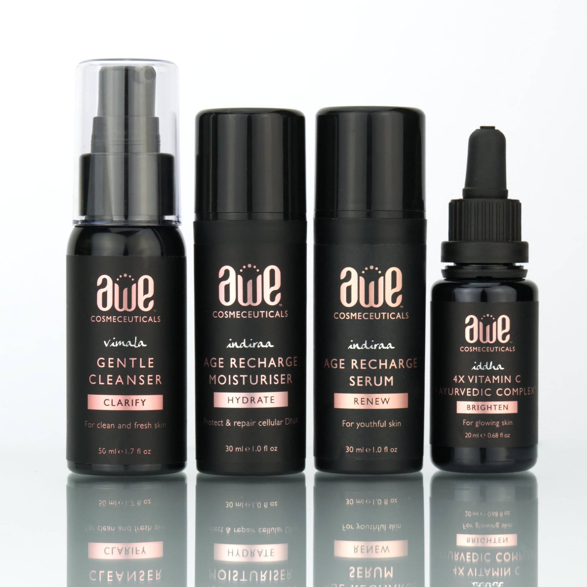 At AWE Cosmeceuticals™, we use ancient Ayurveda practices to help reduce and prevent the visible signs of ageing, to restore the skin's natural glow and vitality through an easy to use skincare solution. We have spent the last 20 years researching and working with some of Australia's leading scientists to design a product range that has proven to make a real difference. We use a unique and powerful combination of antioxidants, peptides, and vitamins that feed and nourish the skin giving it a healthier, brighter and younger-looking appearance.